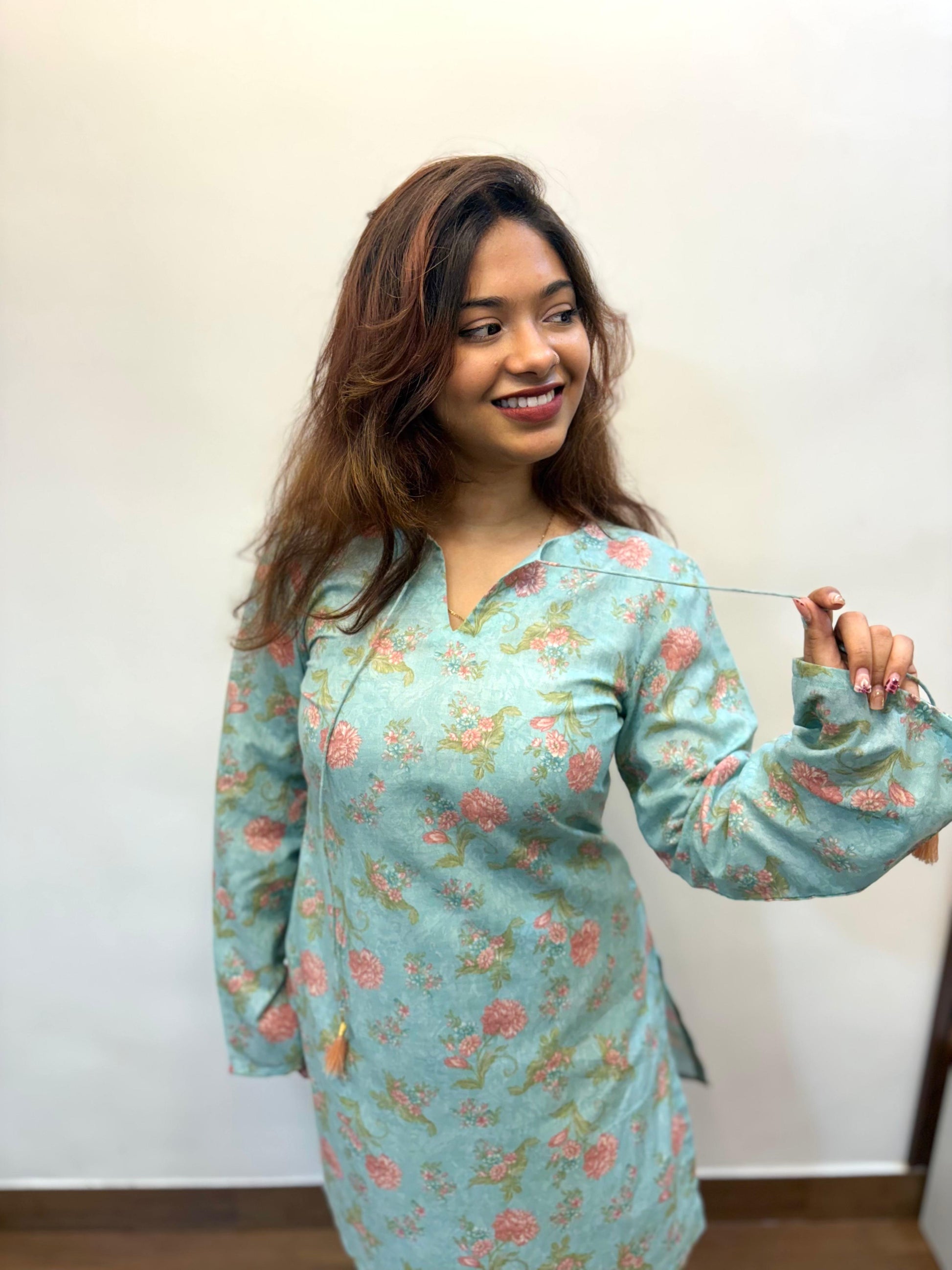 Our Meher Co-ord Set is crafted from soft, breathable cotton, offering a perfect fusion of comfort and understated elegance. The set features a relaxed floral kurta with subtle neckline detailing, paired with matching straight-fit bottoms for a polished yet easygoing look. Ideal for office days, college outings, or casual brunches, this sea green ensemble adds a refreshing charm to your everyday wardrobe. Lightweight and effortlessly stylish, it keeps you cool and confident from morning to evening.