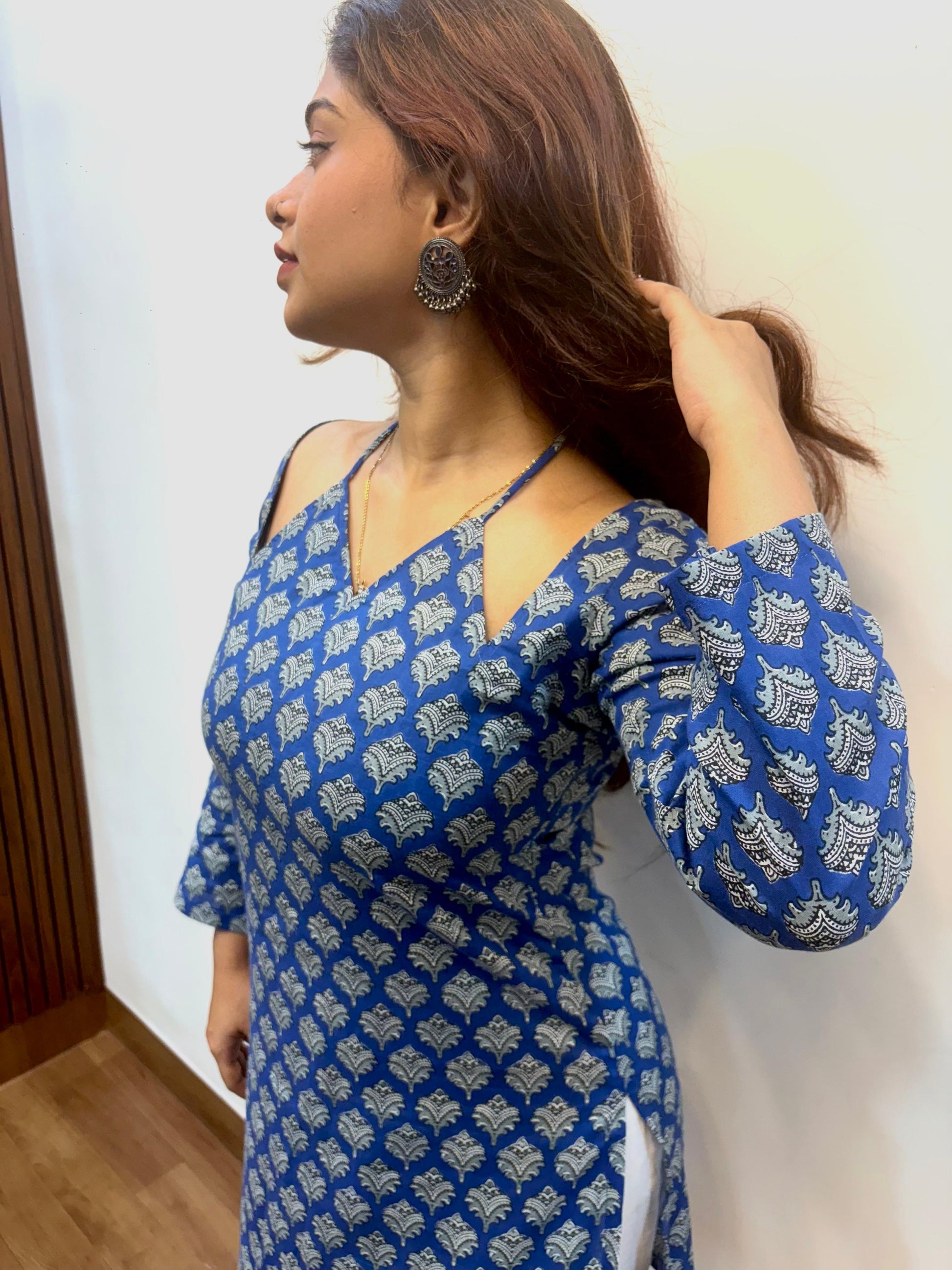Meet Neel Tara, a pure cotton kurti designed for effortless everyday elegance. Crafted with long sleeves and a trendy neckline, this piece brings together comfort and style in just the right balance. Soft, breathable, and versatile, it’s perfect for college, office, or casual outings — keeping you at ease while making a chic statement.